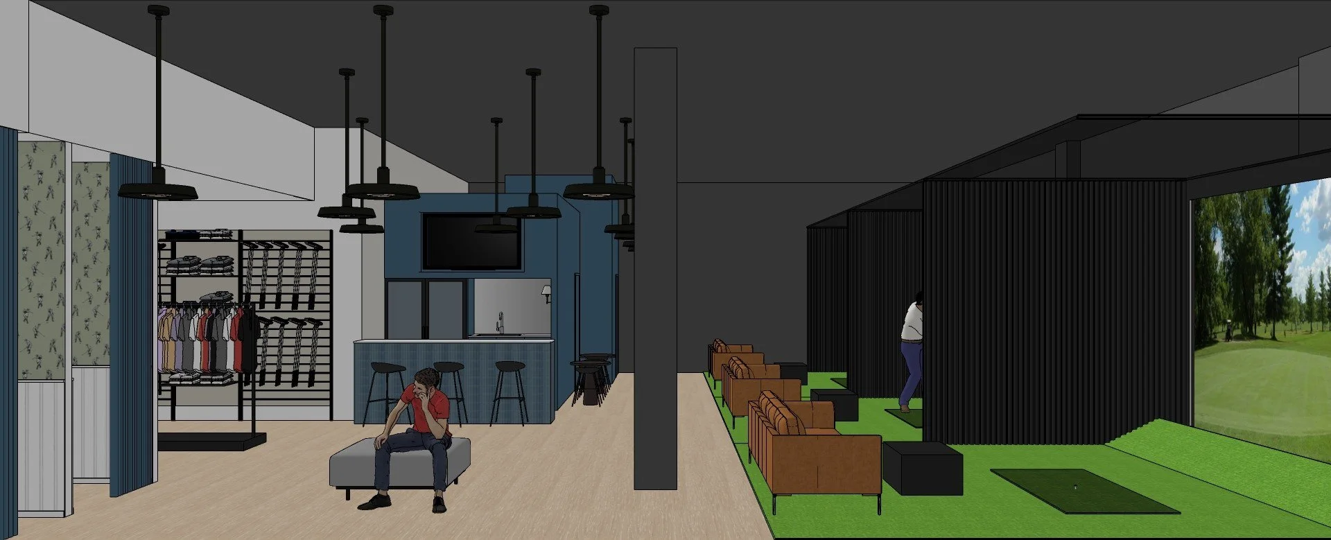 The first of it’s kind, a destination store for golf enthusiasts enhanced by three in-house simulators, in the heart of Noosa junction. The brief was to create a space unlike traditional golf shops. A stylish place to hang-out, work on your swing, and get your golf essentials.